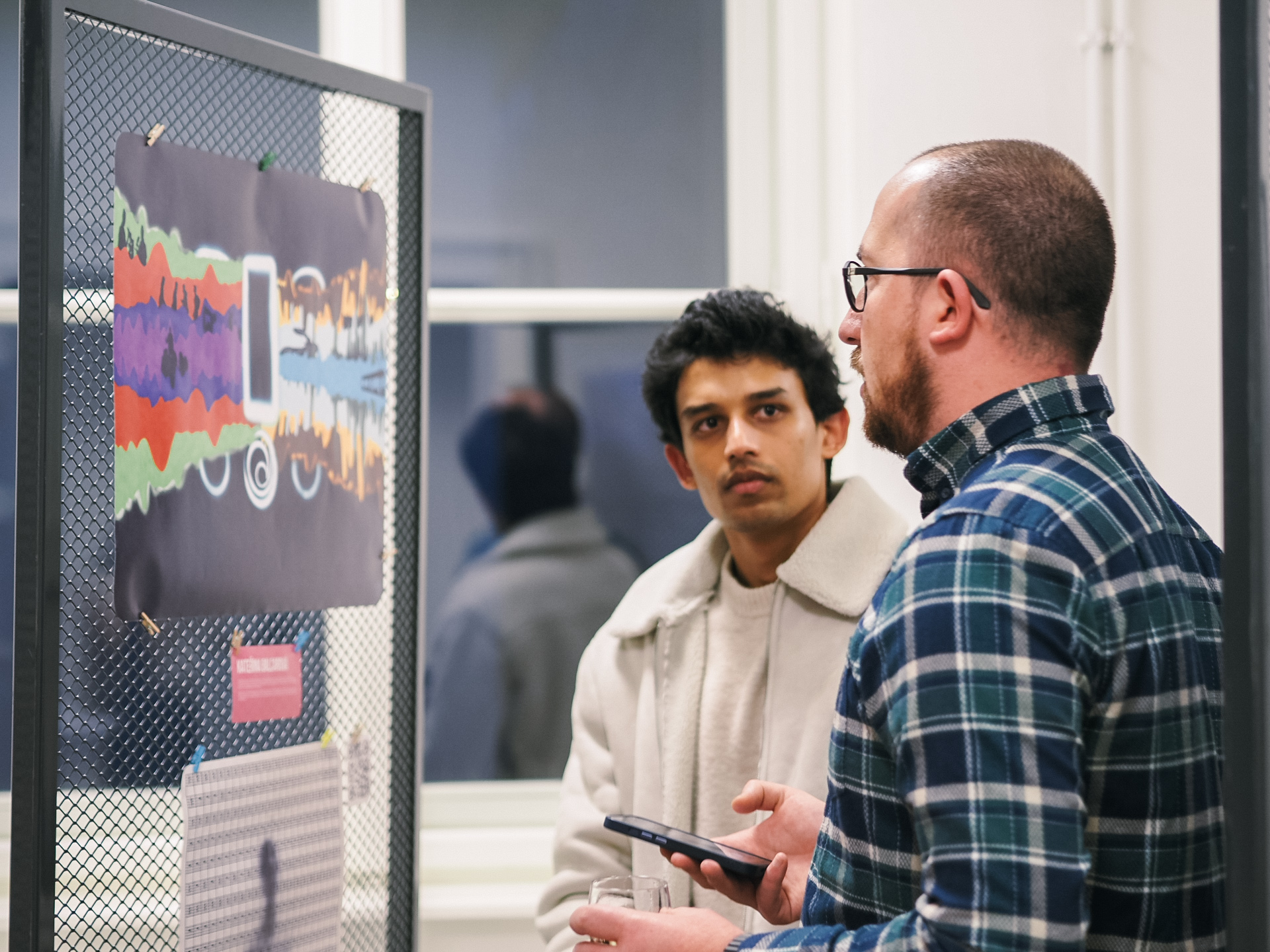 After the formal part of the programme, guests had the opportunity to explore both submitted artworks and pieces created during the previous NEOLAiA Art & Discussion meetup. The space quickly filled with conversation as students, staff, and other visitors admired the showcased pieces while enjoying the refreshments that were provided.