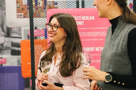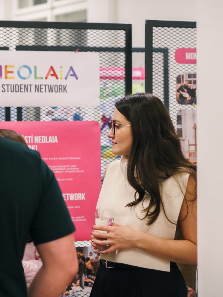 The event was opened with a warm welcome speech by Natália Tomčíková and Linda Šubertová, members of the Student Advisory Group at the University of Ostrava, who organized the event in close collaboration with the Centre for International Cooperation and with the kind support of the Vice-Rector for Research and Artistic Activities. Both expressed appreciation to all of the participants and announced the competition winners: 1. Kateřina Balcarová (Faculty of Education), 2. Karolína Buchtová (Faculty of Arts) and 3. Veronika Hanáčková (Faculty of Medicine). The winning artists received prizes including NEOLAiA merchandise as well as a speaker, headphones, and a Polaroid camera. The event continued with refreshments and a toast dedicated to all the participants who contributed their work.