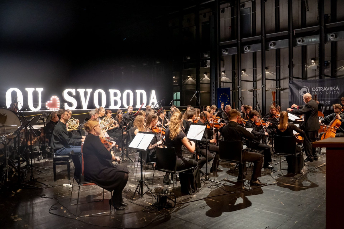 Celým slavnostním odpolednem doprovázel Orchestr Fakulty umění Ostravské univerzity, v jehož podání zaznělo komponované dílo ze „zakázaných skladeb“ pod vedením vynikajícího dirigenta Vladimíra Popelky. Nechyběly ani písně neodmyslitelně spojené se zrodem demokratického státu – Modlitba pro Martu či Anděl od Karla Kryla. Vrcholem letošního Akademického dne bylo představení unikátního projektu Ostravské univerzity, v rámci něhož vznikly tři video příběhy reflektující nepostradatelnost svobody a absurdity totalitního režimu. Hlavní role ztvárnili význační ostravští herci a naši nadaní studenti.