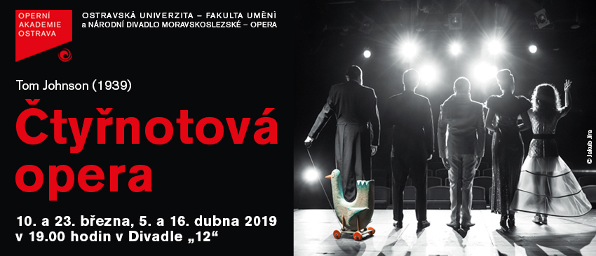Unikátní spolupráce NDM a FU OU už nese první plody! Věřte, že Čtyřnotová opera, unikátní počin Toma Johnsona z roku 1972, je vskutku výjimečným zážitkem. Přijďte nahlédnout pod pokličku operní inscenace a zjistěte, co se honí hlavou mistrům opery. Ba co více, během celého představení zazní pouhé čtyři tóny – A, B, D, E. Myslíte si, že je to nemožné? Přesvědčte se na vlastní oči, jak si s tím naši ostravští umělci pod taktovkou režiséra Juraje Čiernika poradili. Na premiéru se můžete těšit už 14. února 2019 v 19.00 v Divadle „12“!