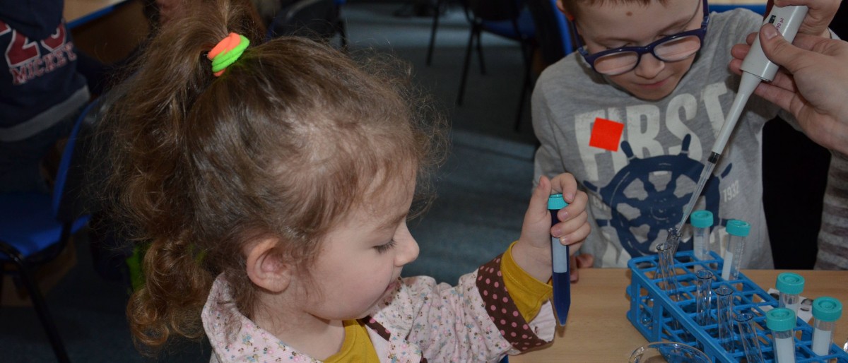 Odpoledne rozdováděly budovu PřF OU děti zaměstnanců OU ve věku dětí 5 až 9 let, pro které Centrum připravilo zábavně-vzdělávací akci. Děti absolvovaly interaktivní odpoledne protkané biologií, fyzikou, chemií, matematikou a informatikou. Byly rozděleny do několika skupin, v nichž rotovaly po stanovištích podle oborů. Děti například pozorovaly a poznávaly nejmenší organismy pod mikroskopem, určovaly pachatele podle otisku prstů, plnily úkoly z biogeografie (přiřazování zvířat ke správnému kontinentu), vyzkoušely si používat laboratorní pomůcky, přeměnily šrouby v pingpongové míčky a v laboratoři chemie si kreslily barevně, kouzelně, elektřinou, světlem i teplem. Dále si hrály s roboty a taky si je zkoušely naprogramovat, skládaly hlavolamy, hrály matematické hry, nebo třeba pexetrio. Nakonec dostaly všechny děti malé občerstvení a drobné dárky.
