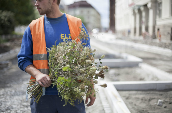 Právě „divokou“ kytici v rukou dělníků opravujících Českobratrskou ulici fotografovala Simona Saeverud pro vizuál celého projektu. „Byla to pro mě výzva, která znamenala překlenout strach vykročit ze ‚zajetých kolejí‘ a zkusit něco nového. Zároveň to byla skvělá zkušenost – i fotografování propagačního charakteru může být akční a zábavné,“ říká studentka oboru Tvůrčí fotografie. Ve své připravované bakalářské práci se zabývá přírodními katastrofami v Norsku, kde dva roky pobývala. Aktuálně ji zajímá land art a performance, kterým se chce aktivně věnovat.