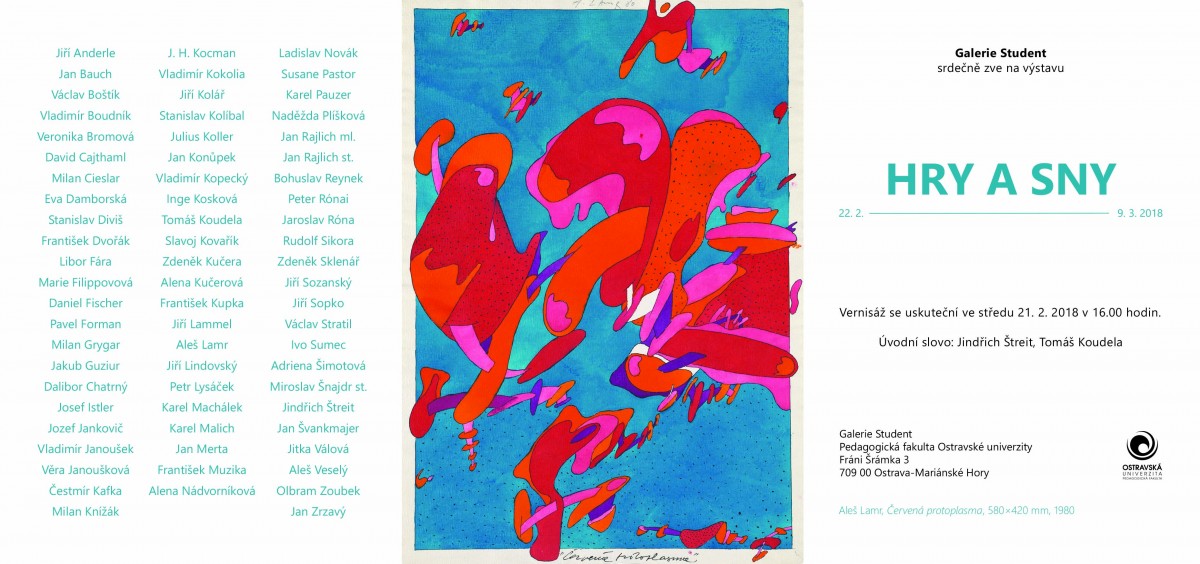 As Games and Dreams / Hry a sny is held on the grounds of the Faculty of Education of the Ostrava University at the beginning of new 2018 exhibition season, the new Student Gallery organizing team would like to state its curator’s intention for this year – topresent both results of study as well as artwork of visual art pedagogues.