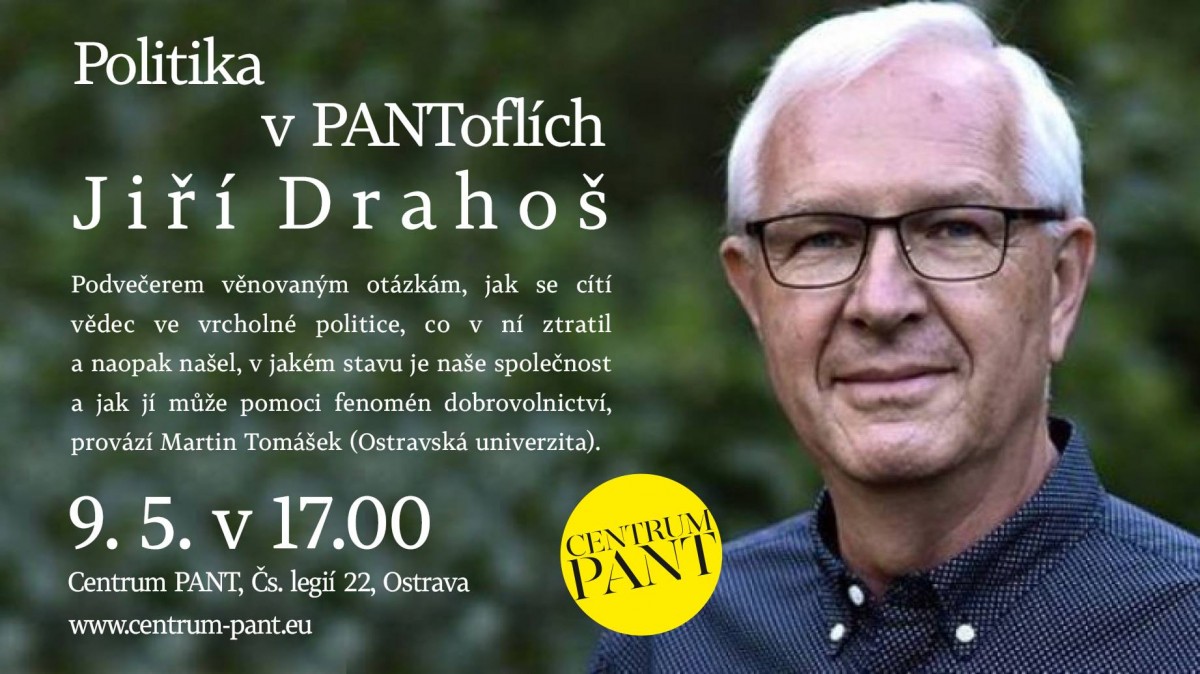 9. května 2018 navštíví profesor Jiří Drahoš Ostravu a rád by se rovněž neformálně setkal s místními studenty. Od 14 hodin v centru PANT proběhne diskuzní setkání, na které jsou zváni všichni studenti středních i vysokých škol. Bude to příležitost dozvědět se mnohé o dobrovolnictví ve všech jeho podobách (od té vzdělávací až po aktivistickou) a také diskutovat o tom, jak tento fenomén může přispět k lepšímu fungování společnosti.