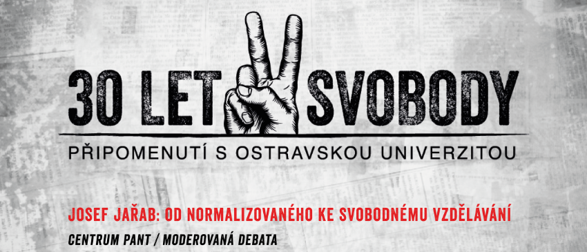 O (ne)svobodě ve škole i ve společnosti před listopadem 1989 i po něm bude s amerikanistou, překladatelem a literárním historikem Josefem Jařabem debatovat Petr Kopecký z katedry anglistiky a amerikanistiky. Po Sametové revoluci byl Josef Jařab prvním svobodně zvoleným rektorem v Československu, a to na Univerzitě Palackého v Olomouci. Svou učitelskou dráhu však započal během šedesátých let v Ostravě. Jak se podle něj změnilo vzdělávání v průběhu uplynulých 30 let?