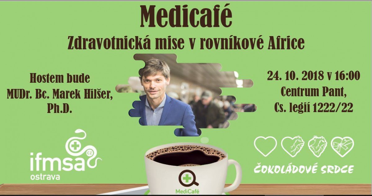 Hostem říjnového Medicafé bude pan doktor Marek Hilšer, kterého jste měli možnost zaznamenat jako jednoho z kandidátů na prezidenta během letošních voleb. Pan doktor se však neúčastní jen politických a občanských aktivit, je také svělým výzkumným pracovníkem a pedagogem v Ústavu biochemie a experimentální onkologie na 1. lékařské fakultě Univerzity Karlovy. Současně se zúčastnil lékařské mise s organizací ADRA v Keňském zdravotnickém zařízení. Právě na tuto misi bude beseda zaměřena.