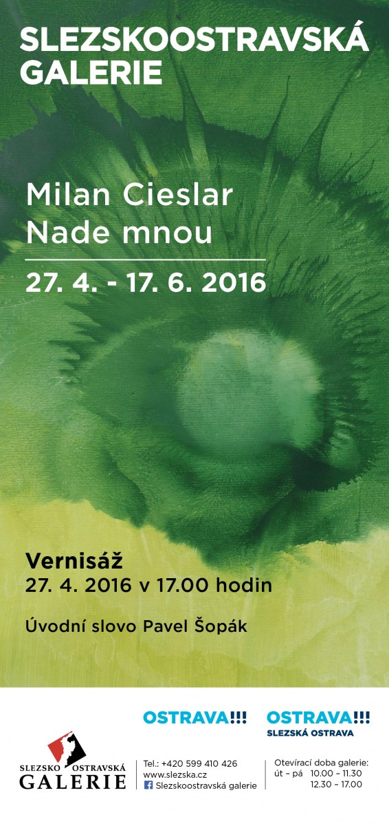 Dr. Milan Cieslar je tajemník katedry výtvarné výchovy Pedagogické fakulty Ostravské univerzity a vernisáž výstavy se bude konat 27. dubna 2016 od 17 hodin. V rámci této výstavy bude Slezskoostravská galerie pořádat také tematické večery, o nichž se dočtete v přiložených plakátech.