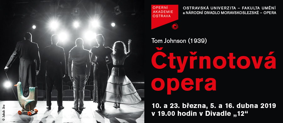 Čtyřnotová opera, první počin Operní akademie Ostrava, je dílem skladatele Toma Johnsona. Prozradíme vám jenom to, že díky této bravurně zpracované inscenaci v režii Juraje Čiernika dostanete příležitost podívat se do světa opery skrytého za oponou, a to vše za doprovodu pouhých čtyř tónů. Do hloubi duše operního pěvce můžete nahlédnout už 10. a 23. března 2019 či 5. a 16. dubna 2019 v Divadle „12“ vždy v 19.00.