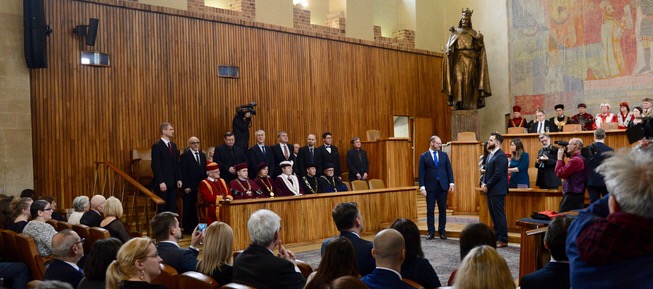 „Získání profesorského titulu je významným oceněním odkazujícím ke špičkové pedagogické práci a výjimečné práci vědecké, výzkumné nebo umělecké. S tímto nejvyšším vědecko-pedagogickým titulem se ale pojí také velká zodpovědnost. Právě vy, nově jmenované profesorky a profesoři, budete nositeli garance kvality vysokých škol ve vědě i ve výuce. Do značné míry ale budete i garanti veřejného a etického závazku vysokých škol jako center svobodného a kritického myšlení,“ uvedl podle MŠMT ve svém projevu ministr Plaga.