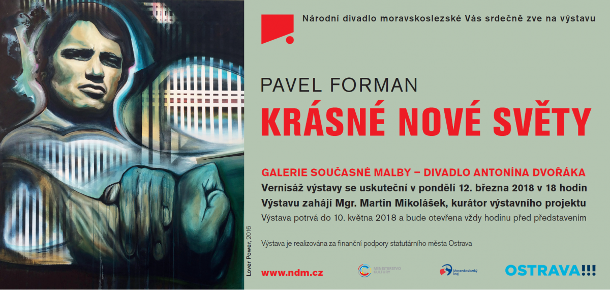 Katedra výtvarné výchovy Pedagogické fakulty Ostravské univerzity Vás zve na výstavu umělce a pedagoga Pedagogické fakulty Ostravské univerzity Pavla Formana s názvem KRÁSNÉ NOVÉ SVĚTY, která je k vidění Galerii současné malby v Divadle Antonína Dvořáka v Ostravě od 12. března 2018 do 10. května 2018.