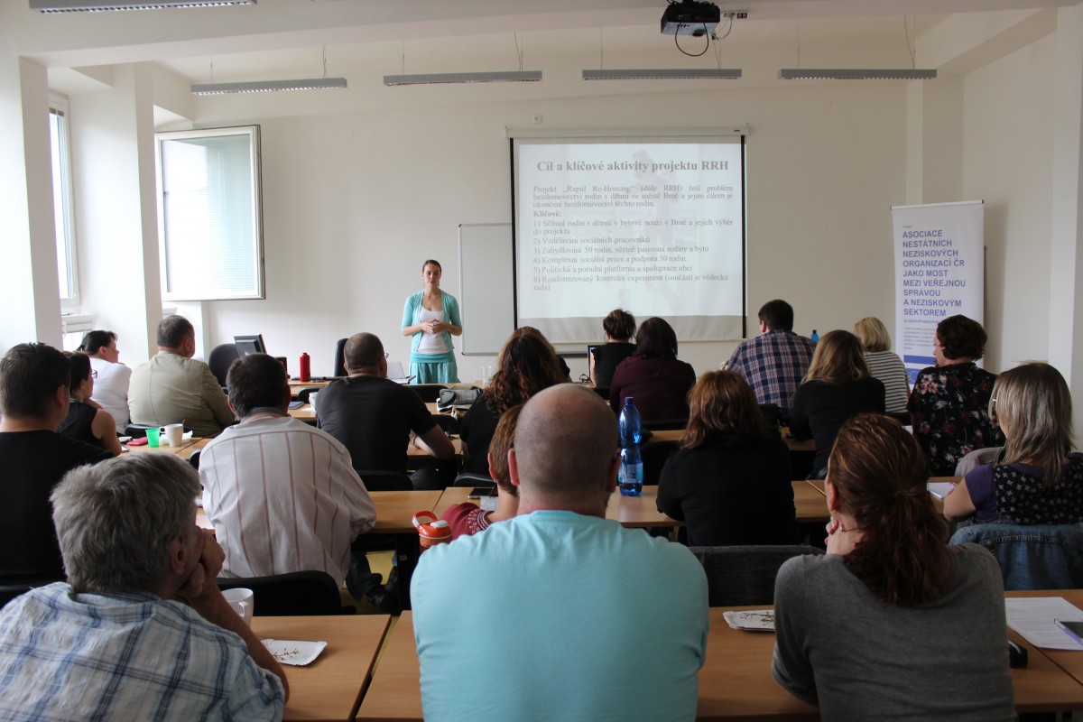 Seminář měl kapacitu 30 míst, které se velmi záhy naplnily zájemci z řad poskytovatelů sociálních služeb a sociálními pracovnicemi a pracovníky. V publiku nechyběli ani lidé se zkušeností bezdomovectví.