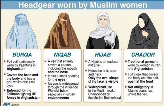 Jsou to kulturní rozdílnosti. Protože v islámu není přímo metoda, jak se zahalit. Jsou ale různé způsoby. Hlavní zásada je zahalit si vlasy a krk. Barva či látka jsou různorodé, stejně jako v ostatních zemích. U nás nemáme burku, ta je typická pro Araby.