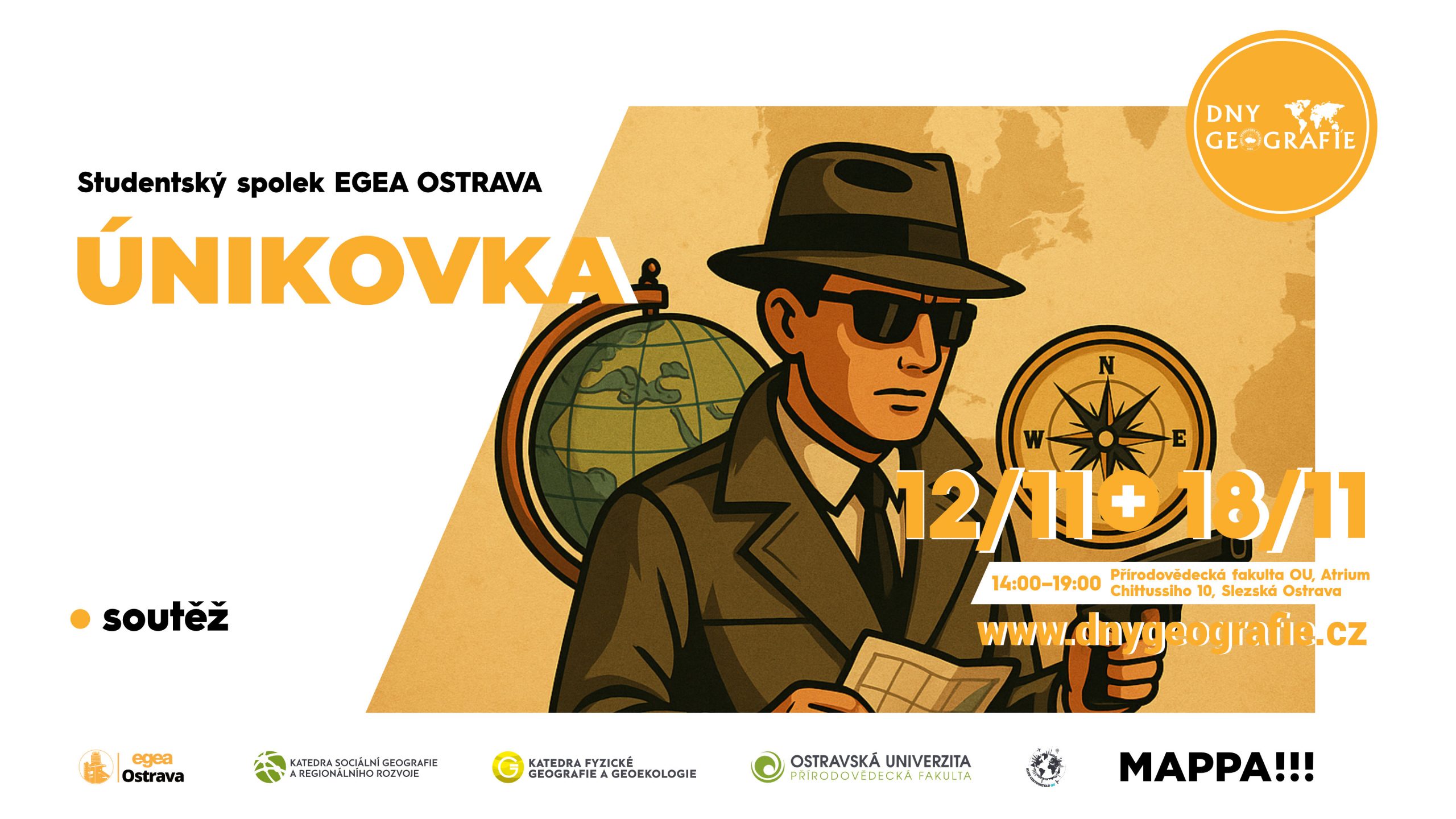 Studentský spolek Egea Ostrava připravil na 12. a 18. listopadu pro všechny zájemkyně a zájemce únikovou hru v prostředí aplikace ActionBound (ke stažení je zdarma), která se bude odehrávat v prostorách Přírodovědecké fakulty na Hladnově (Chittussiho 10). Hráče (jednotlivce i skupiny maximálně po 5 lidech) do únikovky vtáhne poutavý příběh, skrze který si vyzkoušejí své znalosti, kreativitu, pohotovost a práci pod tlakem. Nejrychlejší řešitele čeká odměna. Registrovat se můžete zde.