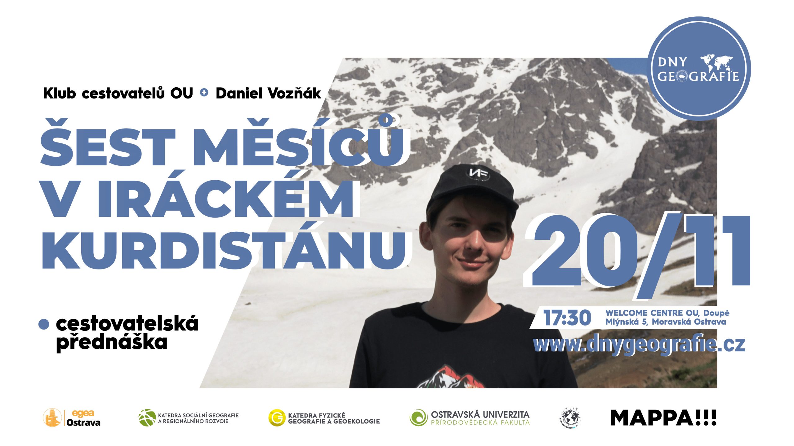 Nenechte si 20. listopadu ujít další cestovatelskou přednášku Klubu cestovatelů OU v Doupěti (Mlýnská 5). Tentorkát vám představí Daniela Vozňáka, studenta z Fakulty umění, a fascinující Irácký Kurdistán – region plný nádherné přírody a tisíciletých tradic. Společně s Danielem prozkoumáme historické památky, ať už jeden z nejstarších křesťanských klášterů na světě či pozůstatky starověké Asyrské říše. Vydáme se do hor, kde oslavíme jarní svátek Newruz vycházející ze starodávného náboženství zoroastrismu a zdoláme nejvyšší vrchol Iráku ve výšce 3607 m n. m. Součástí bude také pohled na složitou politickou situaci v regionu a jeho nedávnou, smutnou historii plnou konfliktů.