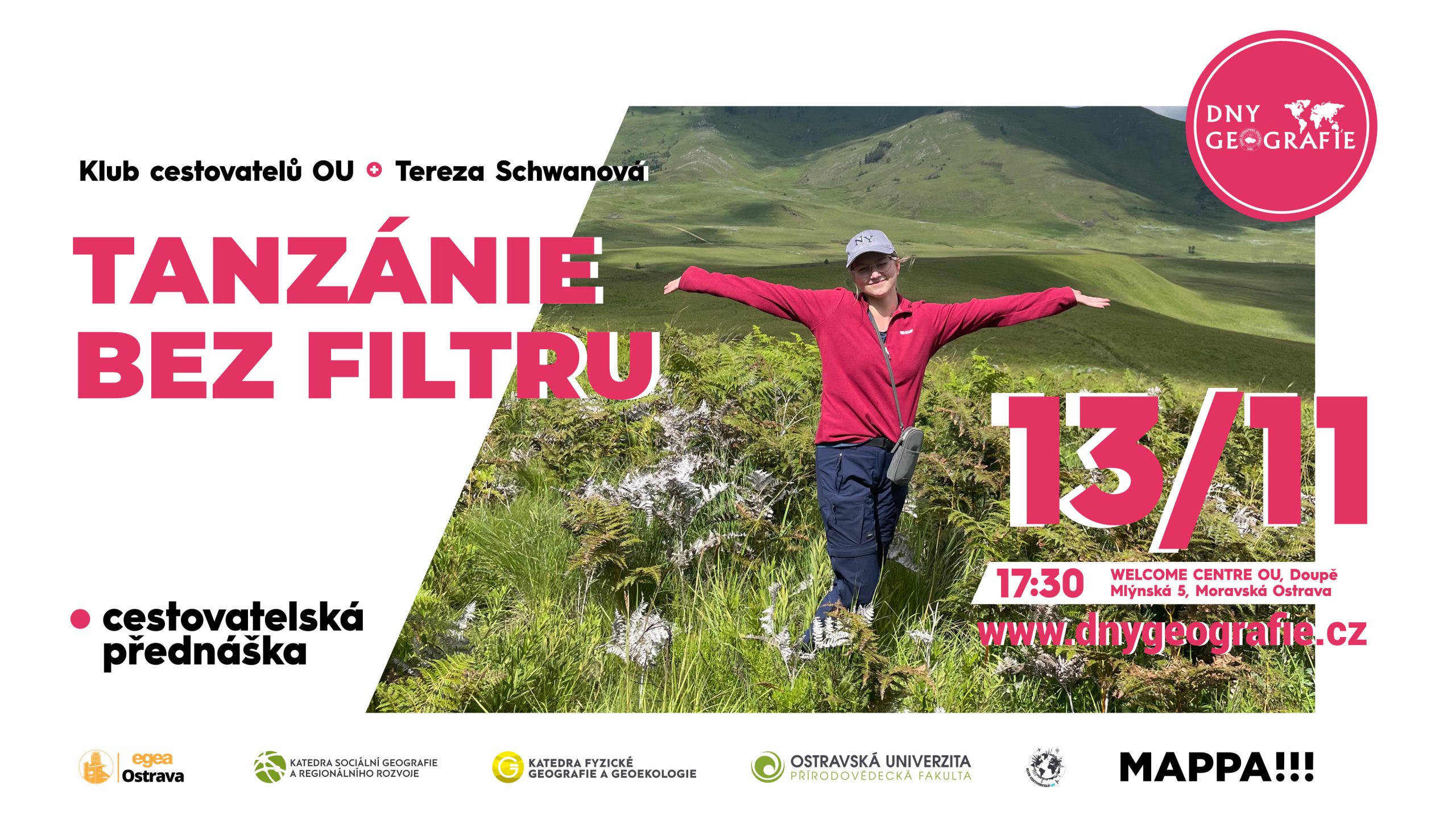 Klub cestovatelů OU nabídne 13. listopadu v Doupěti (Mlýnská 5) nevšední přednášku Terezy Schwanová, studentky experimentální biologie, která nějakou dobu poznávala dobu Tanzánii, kde navštívila největší tanzanské město Dar es Salaam, národní park Kitulo, město Mbeya i horskou vesnici Matamba, pobřeží indického oceánu i jezero Malawi. Týden ovšem Tereza strávila i ve třech různých školách a jednom sirotčinci, díky čemuž mohla nahlédnout do tanzanského školství a každodenní reality tamních dětí. Přednáška se dotkne mnohého, třeba i místní kuchyně, či tureckých záchodů.