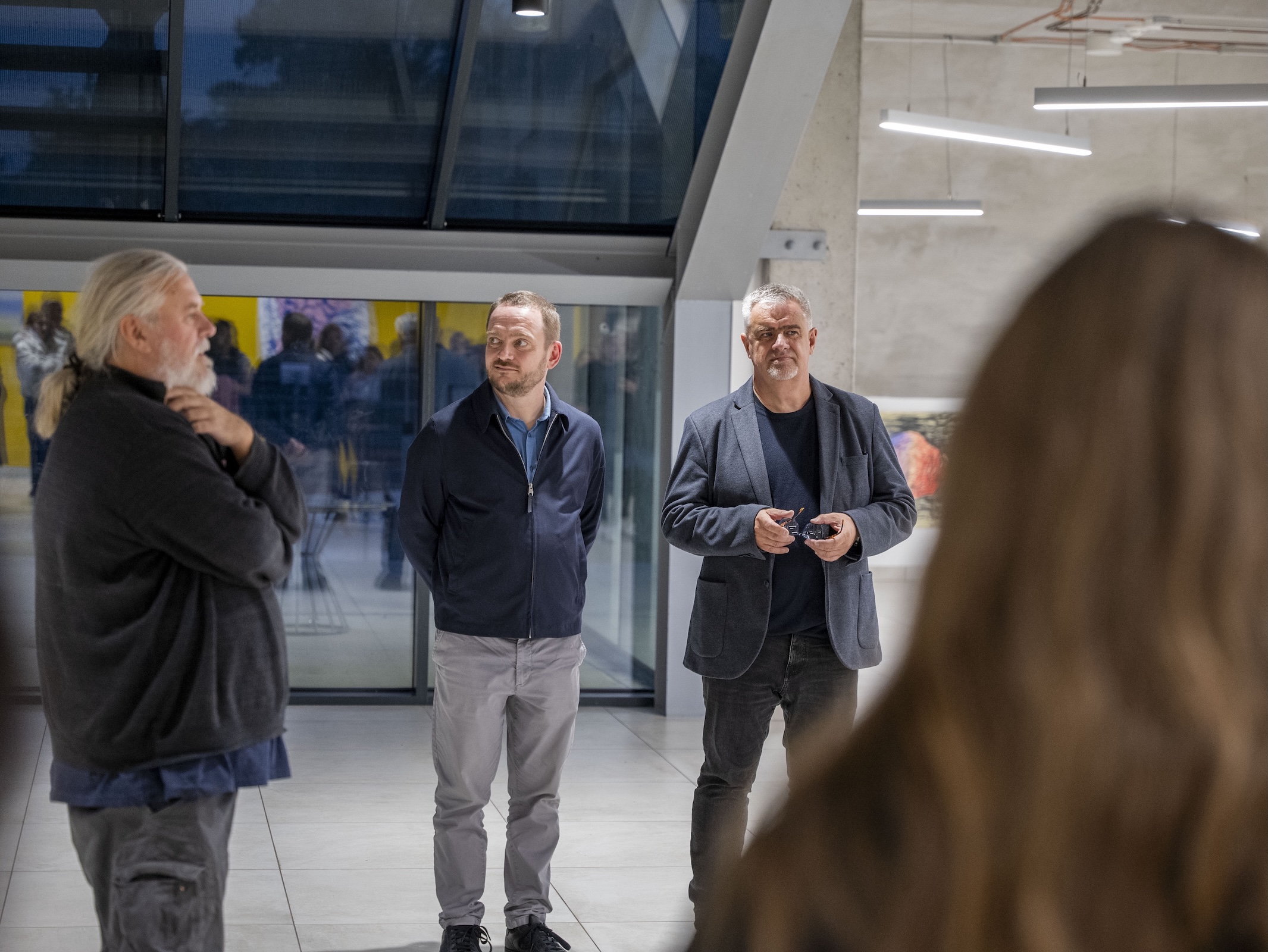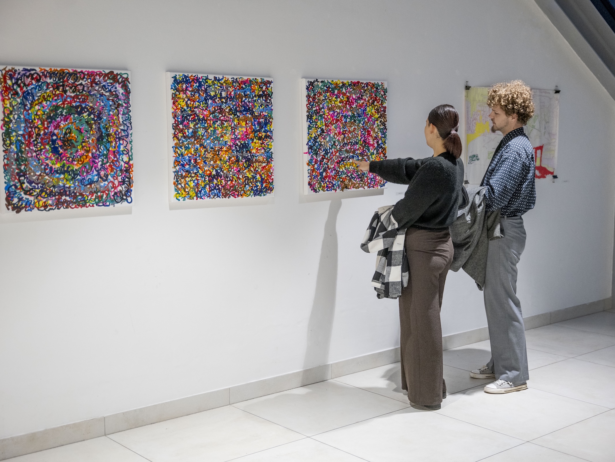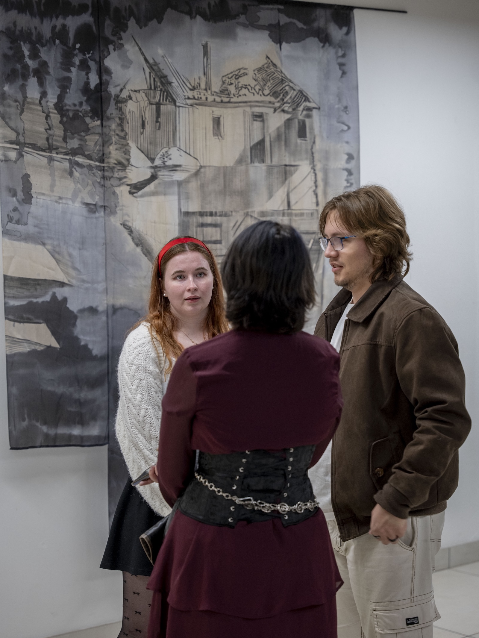 Vernisáž proběhla ve čtvrtek v podvečer za účasti pedagogů, studentů, umělců i zástupců obou univerzit. Nesla se ve velmi příjemném duchu a setkala se s velkým ohlasem. Po oficiálním zahájení kurátory se prostor galerie uvolnil k přirozenému pohybu a rozhovorům. Hosté se s vínem v ruce procházeli mezi díly, zastavovali se u obrazů a nechávali na sebe působit jejich tichý dialog.