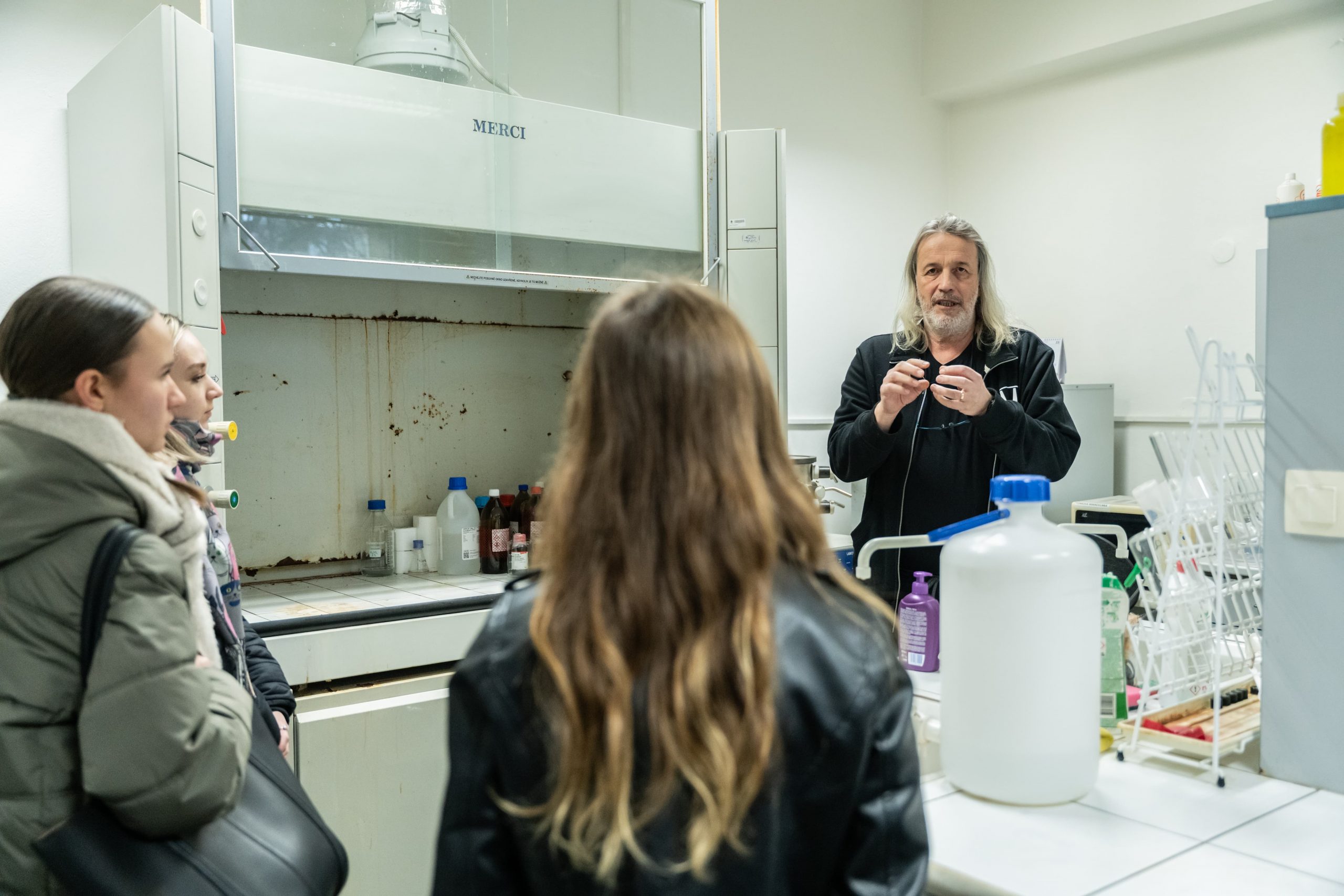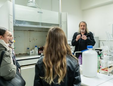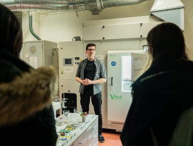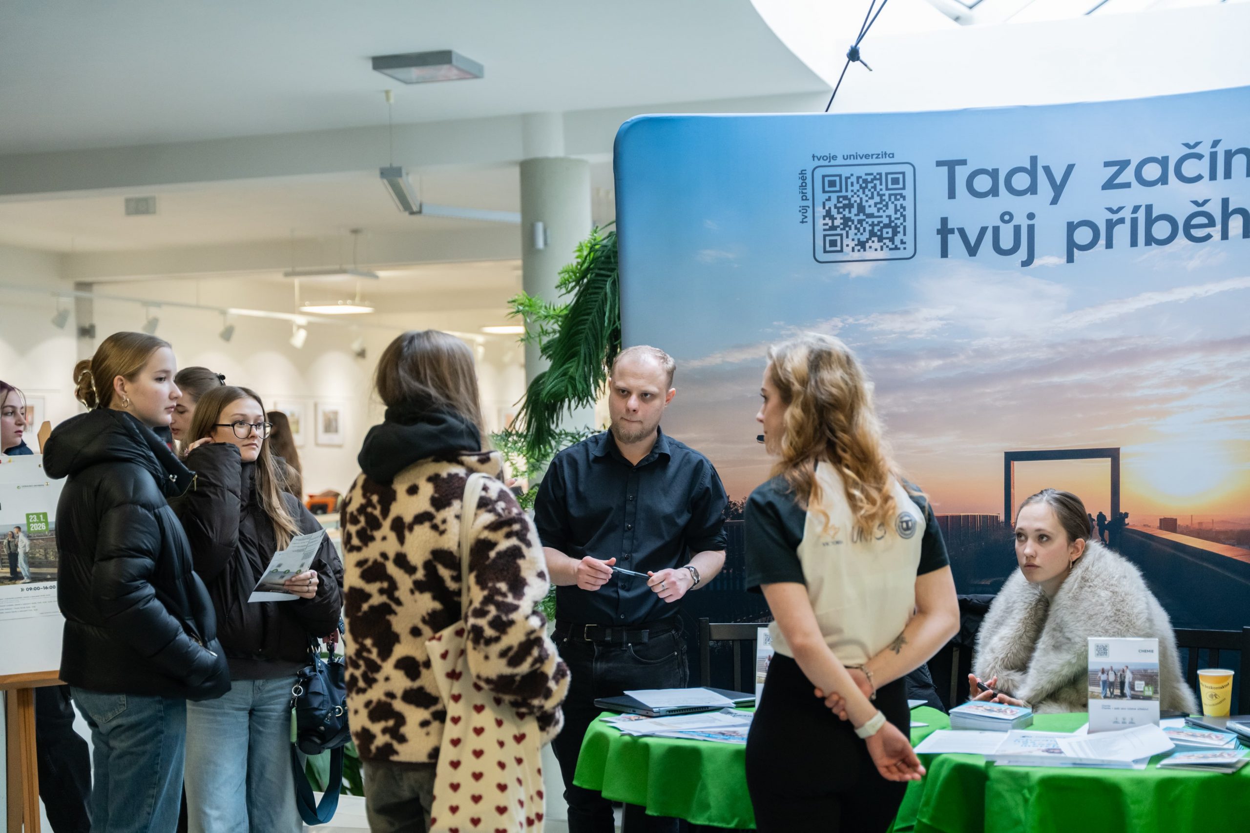 Přírodovědecká fakulta přivítala návštěvníky ve dvou budovách – do centra na ulici Bráfova zamířili především zájemci o chemii a učitelství fyziky, na Chittussiho pak uchazeči o studium dalších rozličných studijních oblastí. „Mezi návštěvníky bylo dost studentů, které jsme potkali už na Gaudeamu nebo na GlowUp Uni Tour. Přišlo hodně těch, kteří mají o své volbě jasno, nejen díky tomu jsme diskutovali hodně do hloubky o uplatnění absolventů, ať už ve vědecké sféře nebo v soukromém sektoru,“ říká fakultní ambasador Dominik Zogata.
