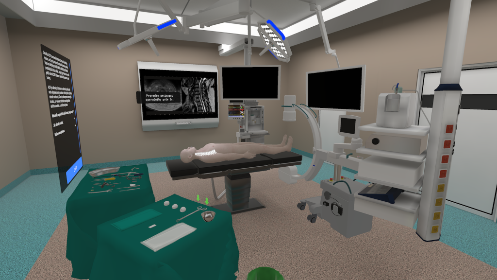 V našem týmu jsou neurochirurgové a operační sestry s mnohaletými zkušenostmi s praktickou výukou těchto výkonů z klinické praxe. Proto jsme se zaměřili na tvorbu tréninkových modulů nejprve relativně jednoduchých neurochirurgických operací s minimálním množstvím instrumentů, a to vertebroplastiku a aplikaci intrakraniálního čidla. Na jejich vývoji jsme si ověřili možnosti VR ve výuce léčebných postupů.