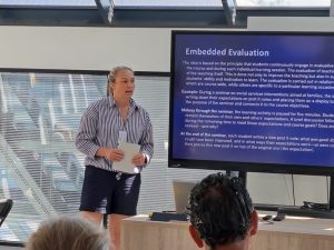 V dubnových a květnových týdnech 2025 pracovalo společně i v malých týmech více než čtyřicet akademických pracovníků, hledali cesty k efektivnímu aktivnímu zapojení studentů kolaborativními úkoly a aktivitami (Everybody’s on board: student-centred collaborative approach) a metodou „převrácené výuky“ (The Flipped Classroom Approach in Higher Education), rozšiřovali si pole pro volbu metod hodnocení studentů (Assessment in EMI Contexts), věnovali se etice využívání AI na univerzitách (AI in Higher Education) a otázce, jak promítnout do vzdělávání cíle udržitelnosti a zásady rovnosti (Sustainable teaching in terms of diversity, equality and gender).
