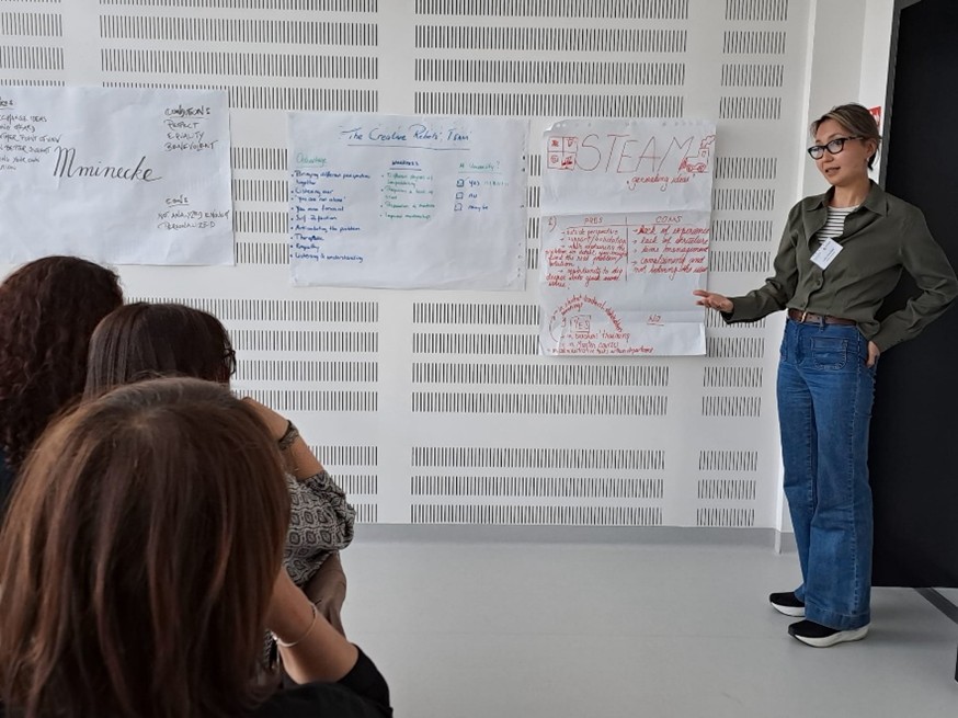 V dubnových a květnových týdnech 2025 pracovalo společně i v malých týmech více než čtyřicet akademických pracovníků, hledali cesty k efektivnímu aktivnímu zapojení studentů kolaborativními úkoly a aktivitami (Everybody’s on board: student-centred collaborative approach) a metodou „převrácené výuky“ (The Flipped Classroom Approach in Higher Education), rozšiřovali si pole pro volbu metod hodnocení studentů (Assessment in EMI Contexts), věnovali se etice využívání AI na univerzitách (AI in Higher Education) a otázce, jak promítnout do vzdělávání cíle udržitelnosti a zásady rovnosti (Sustainable teaching in terms of diversity, equality and gender).