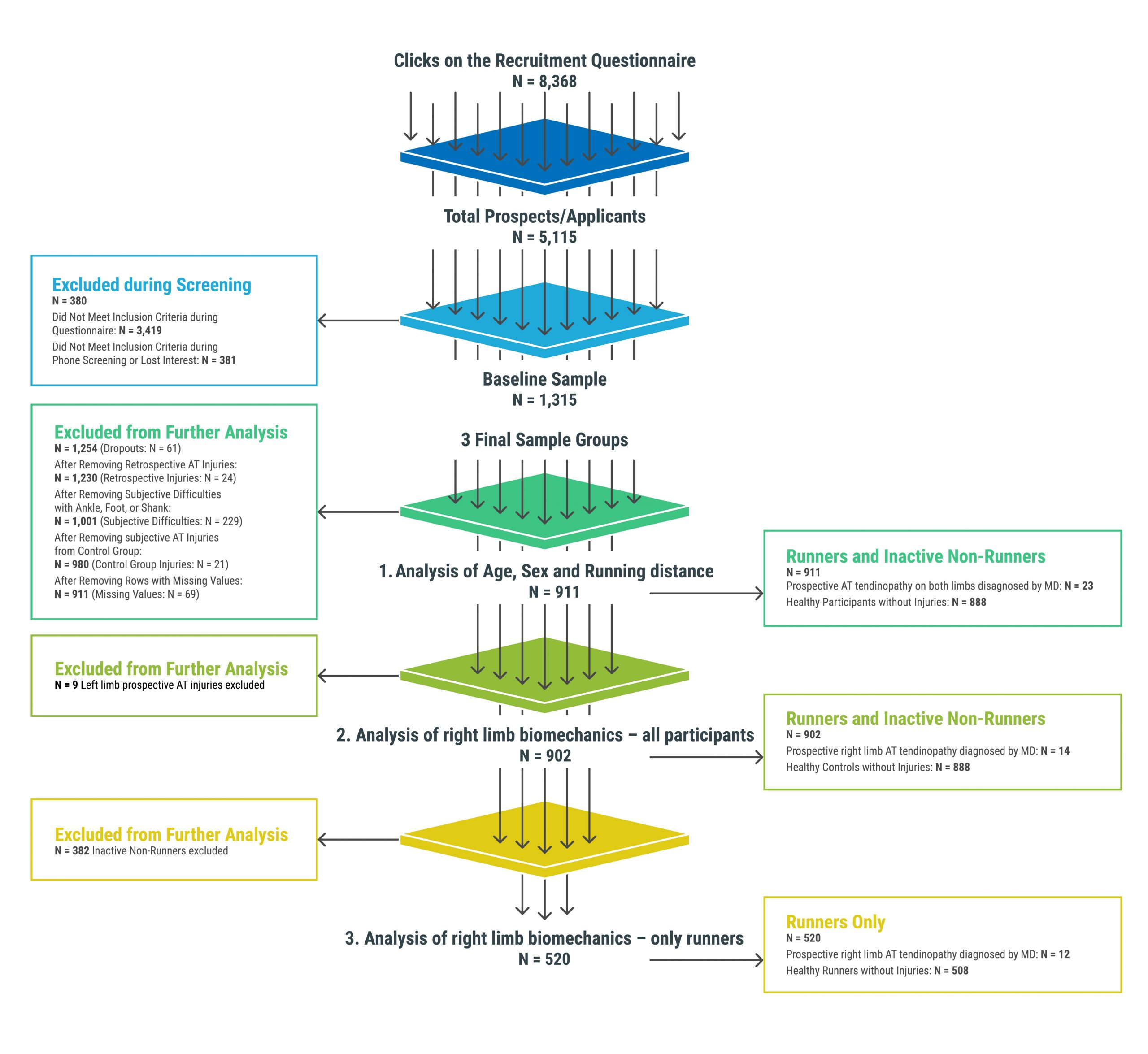 More than 1,300 people participated in the project. Over 900 of them had no Achilles tendon issues at the start — a fact confirmed by a physician using magnetic resonance imaging. Each participant underwent detailed biomechanical analysis in the laboratory, completed baseline radiological examinations, and was monitored for an entire year using a smart wristband that objectively measured their physical activity.