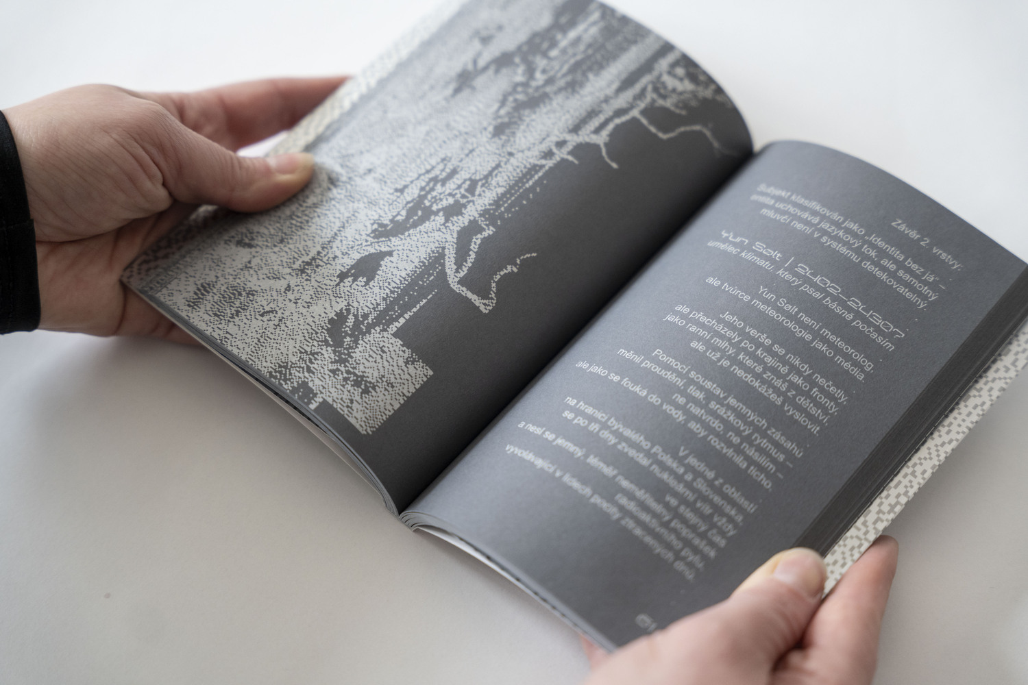 Paralelně s instalací byla vydána i kniha Chuť vlhké hlíny Tomáše Koudely píšícím pod pseudonymem Jan Vrak. Jde o experimentální básnickou sbírkou, která vznikla postupným utvářením poetického organismu, který na sebe nabaluje vrstvy významu, nedorozumění, šumu i nečekané zkratky. Koudela zde testuje možnosti kooperativního psaní, kdy se hranice mezi autorem, editorem a algoritmem stírá. AI se stává spoluhráčem, který občas nabídne asociace, jindy úplně rozbije původní směr a nutí autora hledat nové vstupy či korekce. Design a sazbu knihy vytvořili Tereza Čapandová & Jakub Pohludka, kteří vizuální podobou podpořili fragmentární procesualitu zdůrazňující charakter sbírky.