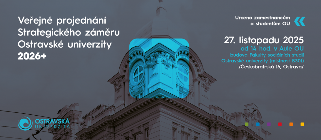 Veřejné projednání připravovaného Strategického záměru 2026+ Ostravské univerzity se bude konat ve čtvrtek 27. listopadu od 14 hodin v aule (místnost č. 301) na Fakultě sociálních studií OU.