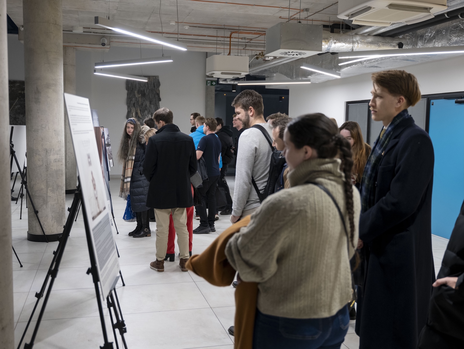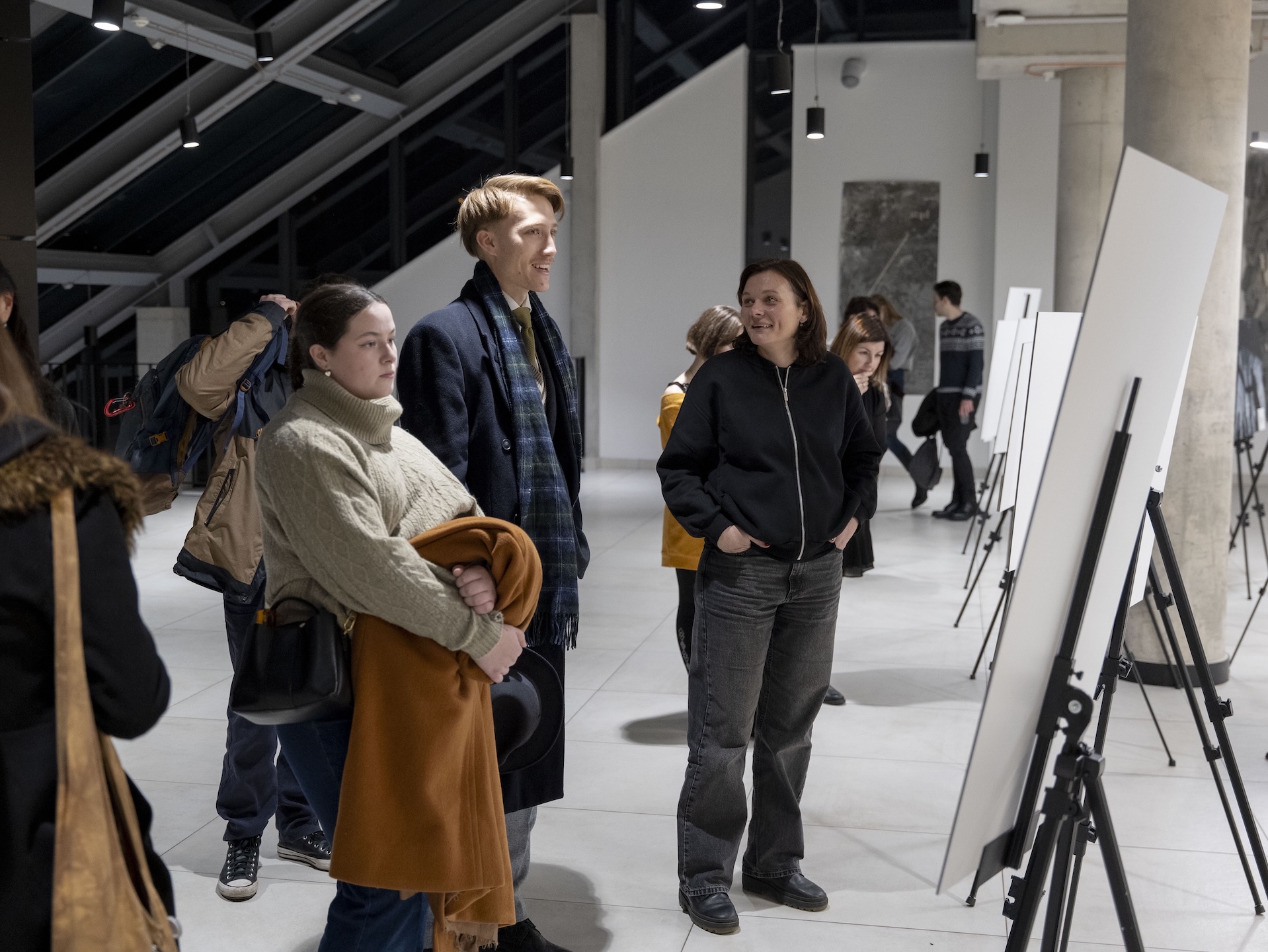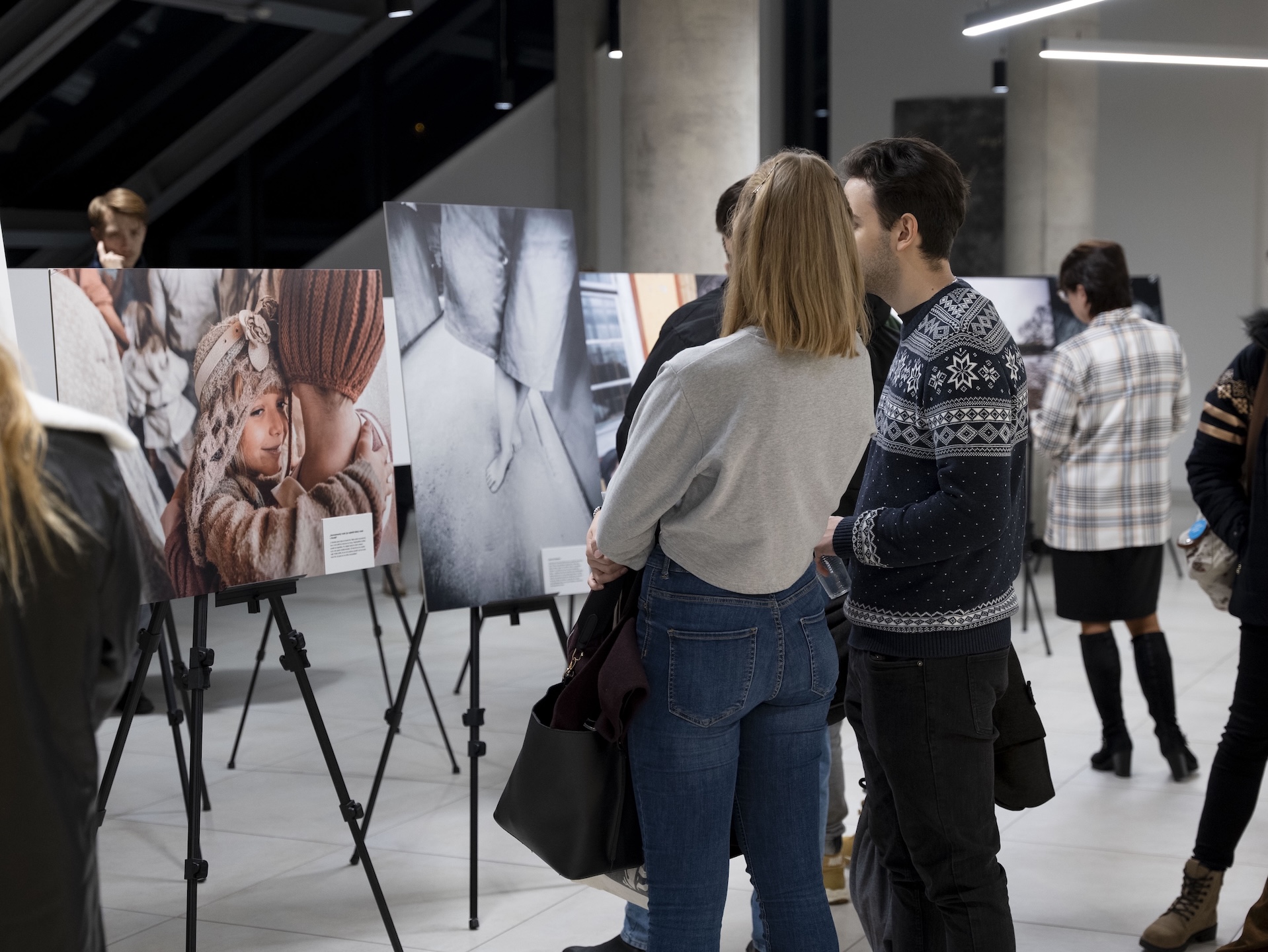 První prosincové odpoledne v Galerii Student patřilo otevření výstavy Hrdinou proti své vůli, která do prostor City Campusu přinesla silné vizuální i lidské příběhy dětí vyrůstajících v ústavní péči. Už krátce před začátkem vernisáže se galerie zaplnila studenty, pedagogy i návštěvníky z odborných organizací, kteří přišli nahlédnout do tématu, jež ve společnosti často zůstává skryté.