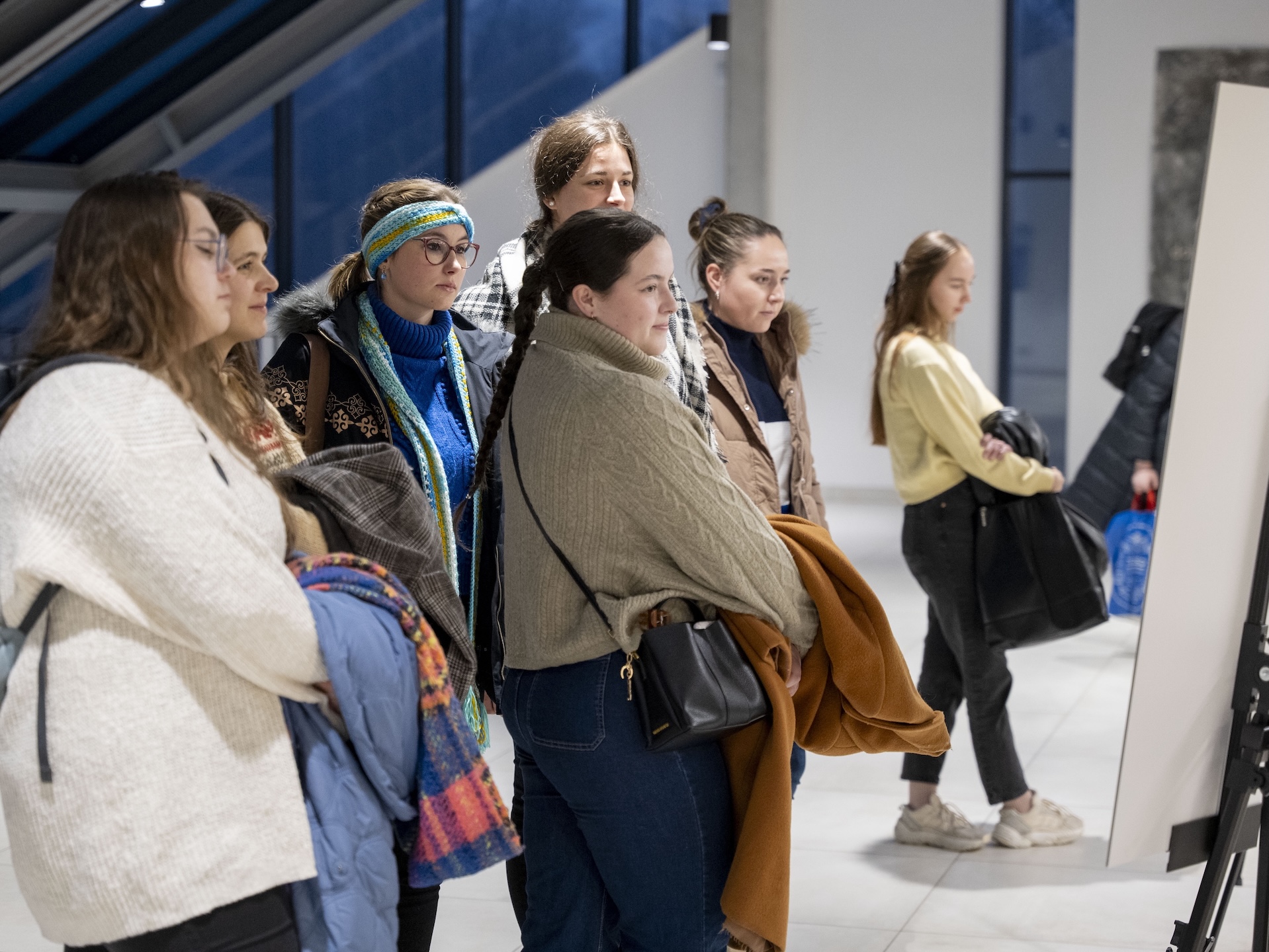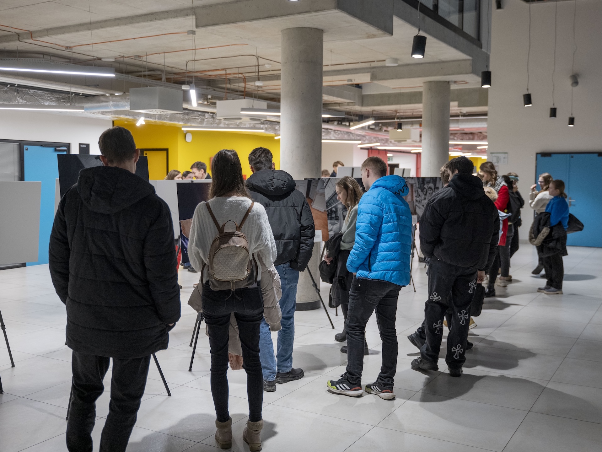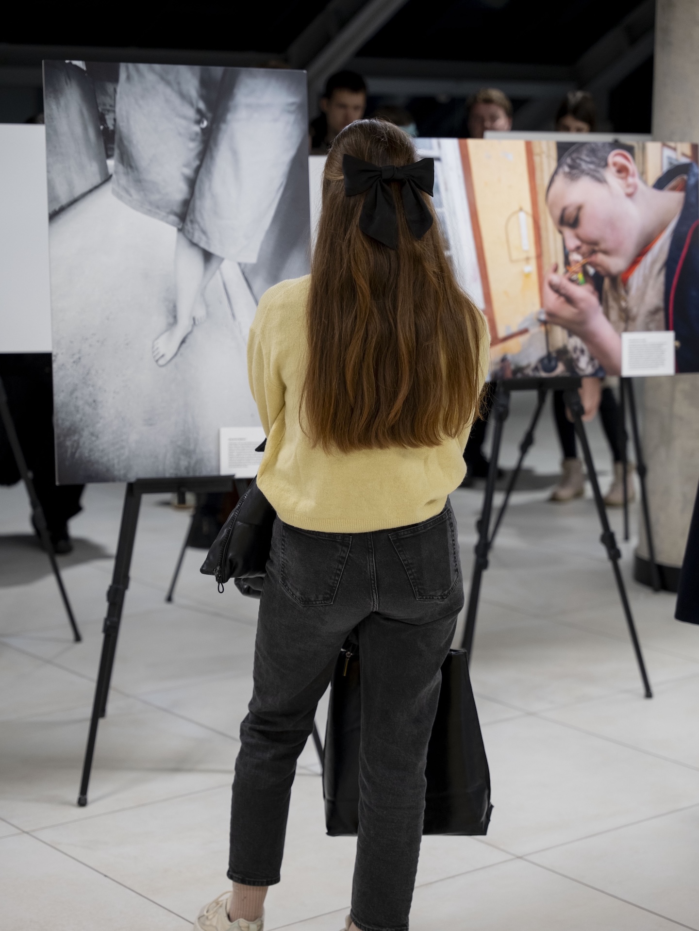 První prosincové odpoledne v Galerii Student patřilo otevření výstavy Hrdinou proti své vůli, která do prostor City Campusu přinesla silné vizuální i lidské příběhy dětí vyrůstajících v ústavní péči. Už krátce před začátkem vernisáže se galerie zaplnila studenty, pedagogy i návštěvníky z odborných organizací, kteří přišli nahlédnout do tématu, jež ve společnosti často zůstává skryté.